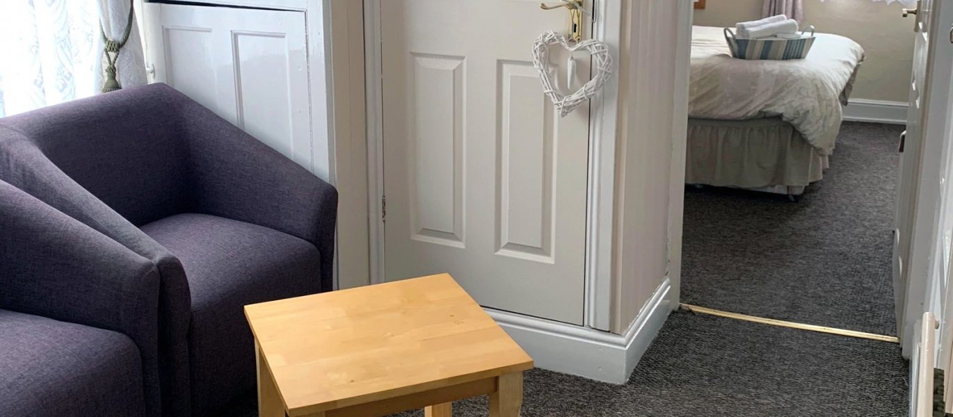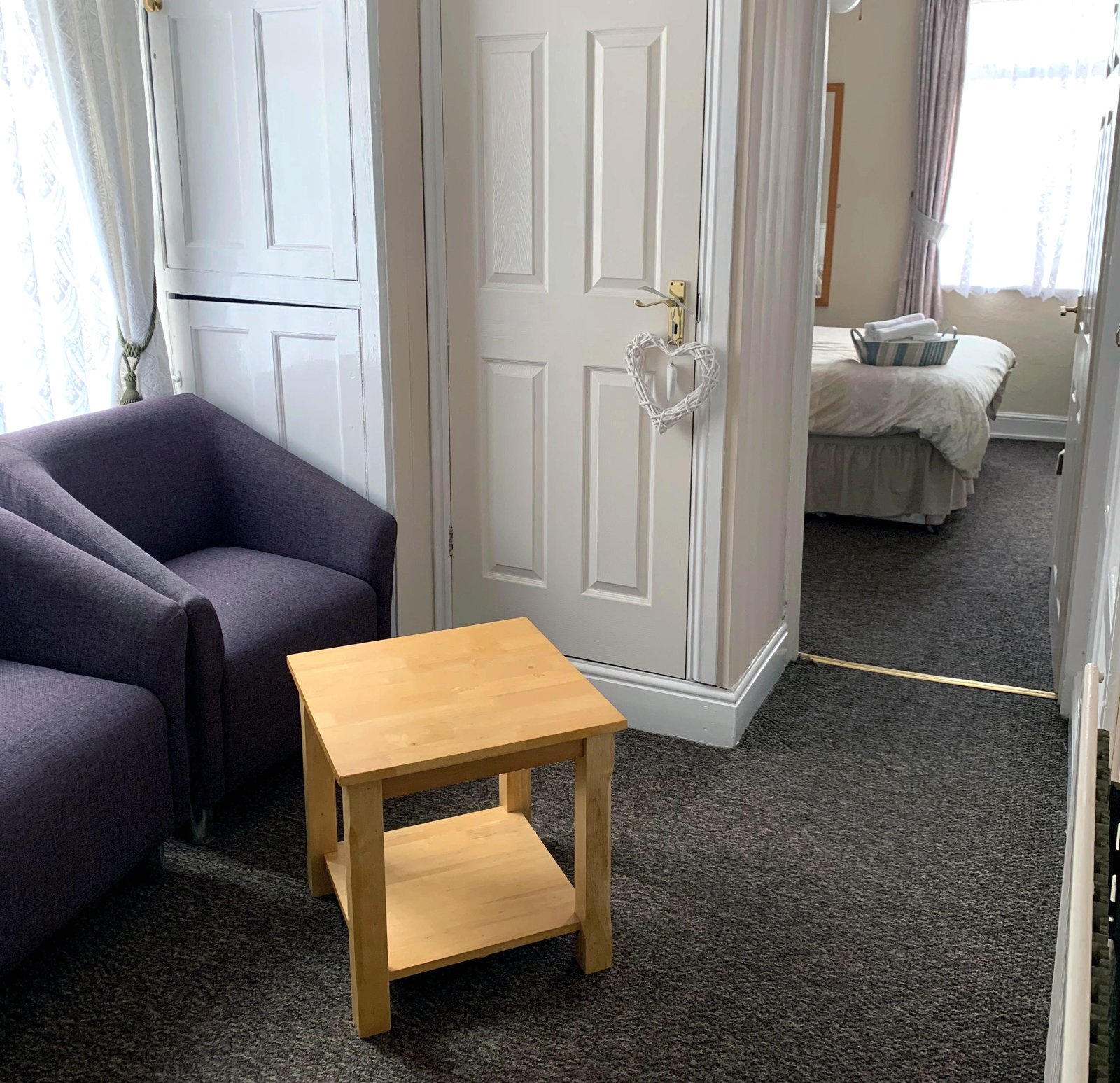 Double room on the ground floor with bedroom and separate seating area with its own television.
